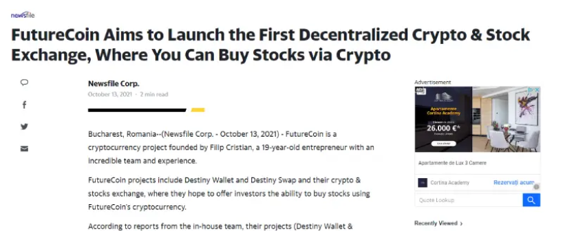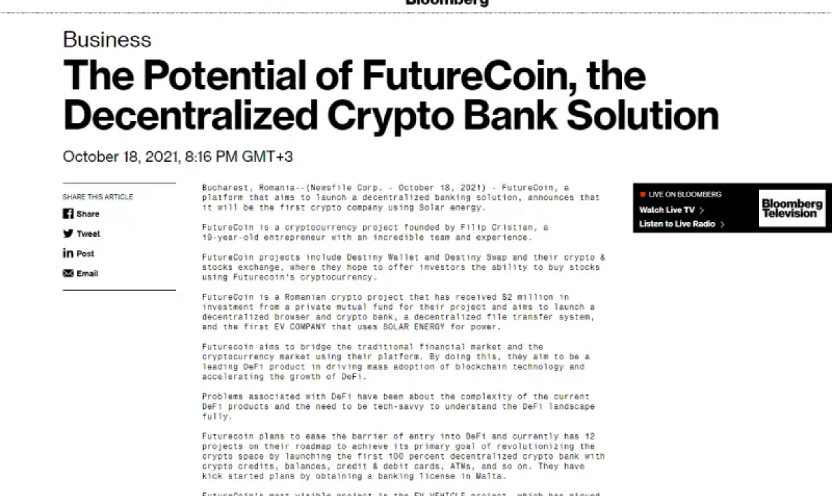 FutureCoin is a project launched in 2021 with the purpose of creating more